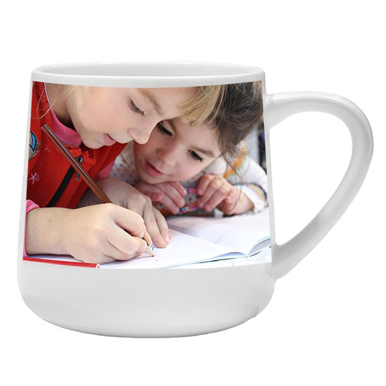 Velmi krásný a elegantní hrnek na kávu s velkým břichem, vhodný pro potisk vlastním obrázkem nebo fotografií. Hrnek má také krásnou rukojeť ve tvaru ucha, která se pohodlně drží. Zkosený tvar je nejen elegantní na pohled, ale také pomáhá udržet nápoje déle horké. Omyvatelný v myčce nádobí. Výhodou hrnku je velká plocha potisku, kde můžete mít velké fotografie nebo můžete vložit více menších a stále za stejnou cenu. Objem: 17 Oz – 500 ml – Výška: 100 mm – Průměr: 120 / 140 mm